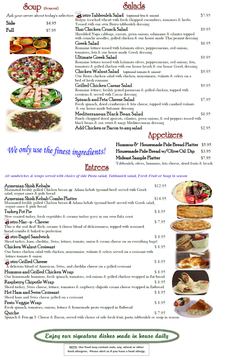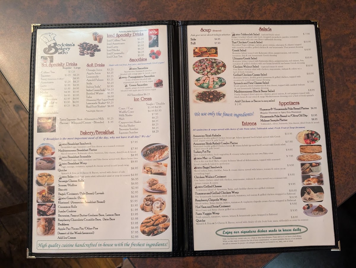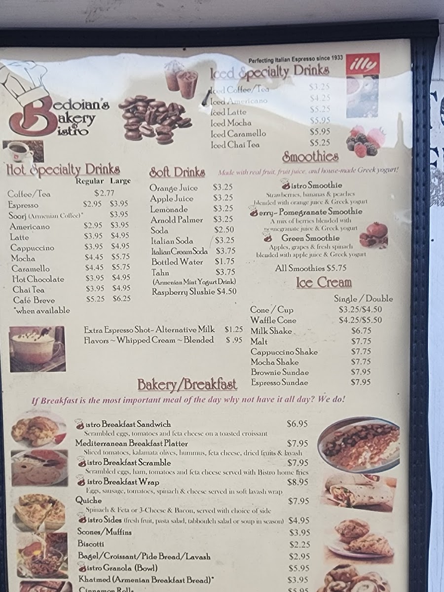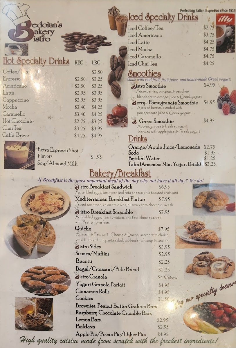 Bedoian's Bakery & Bistro offers a menu that blends simple café favorites with Mediterranean and Middle Eastern influences, creating a comfortable spot for casual meals and thoughtful refreshments. Here, you’ll find an inviting mix of fresh-baked pastries like flaky croissants and cinnamon rolls, alongside hearty dishes such as chicken pot pie and Mediterranean shish kebab platters.