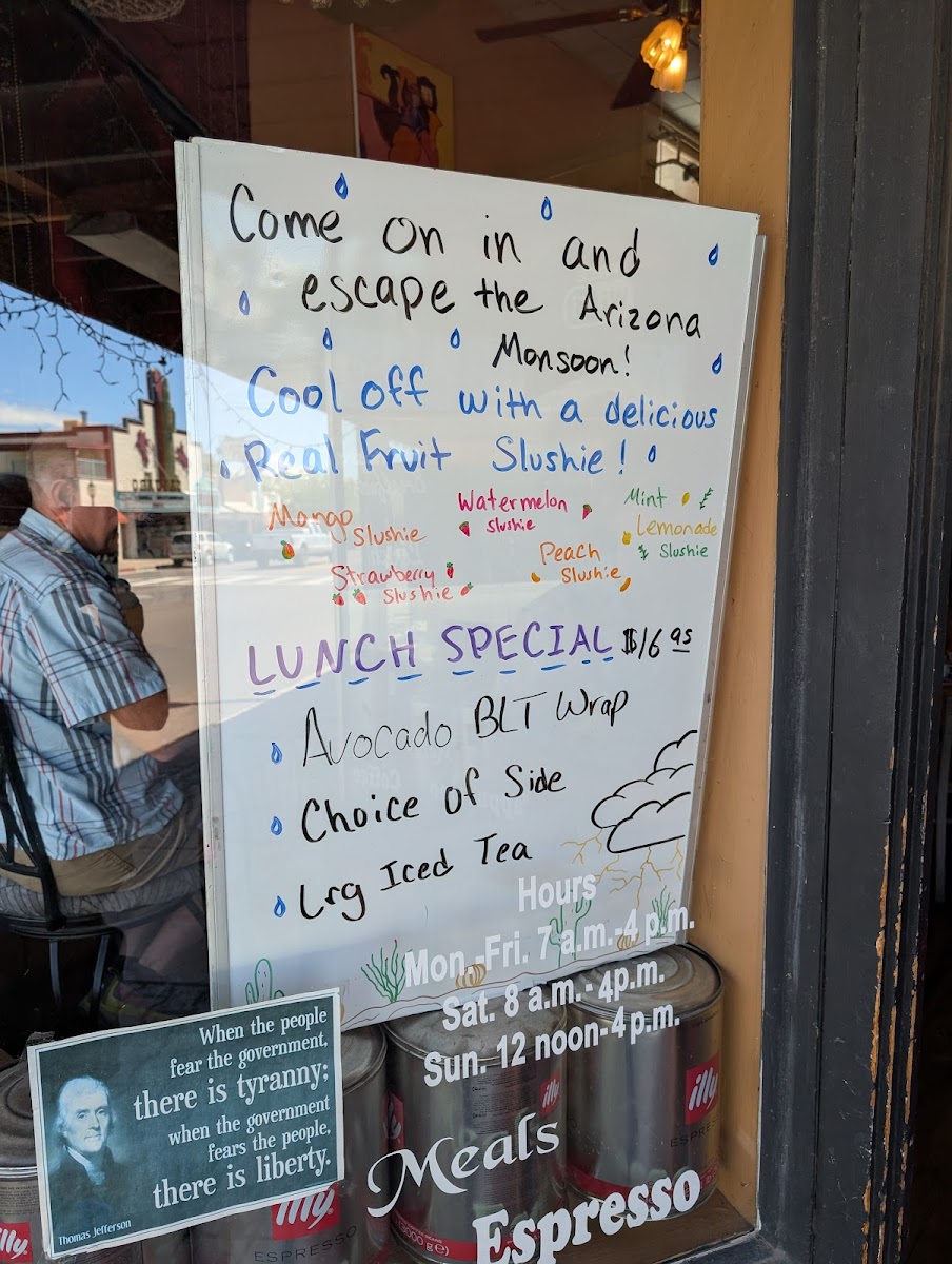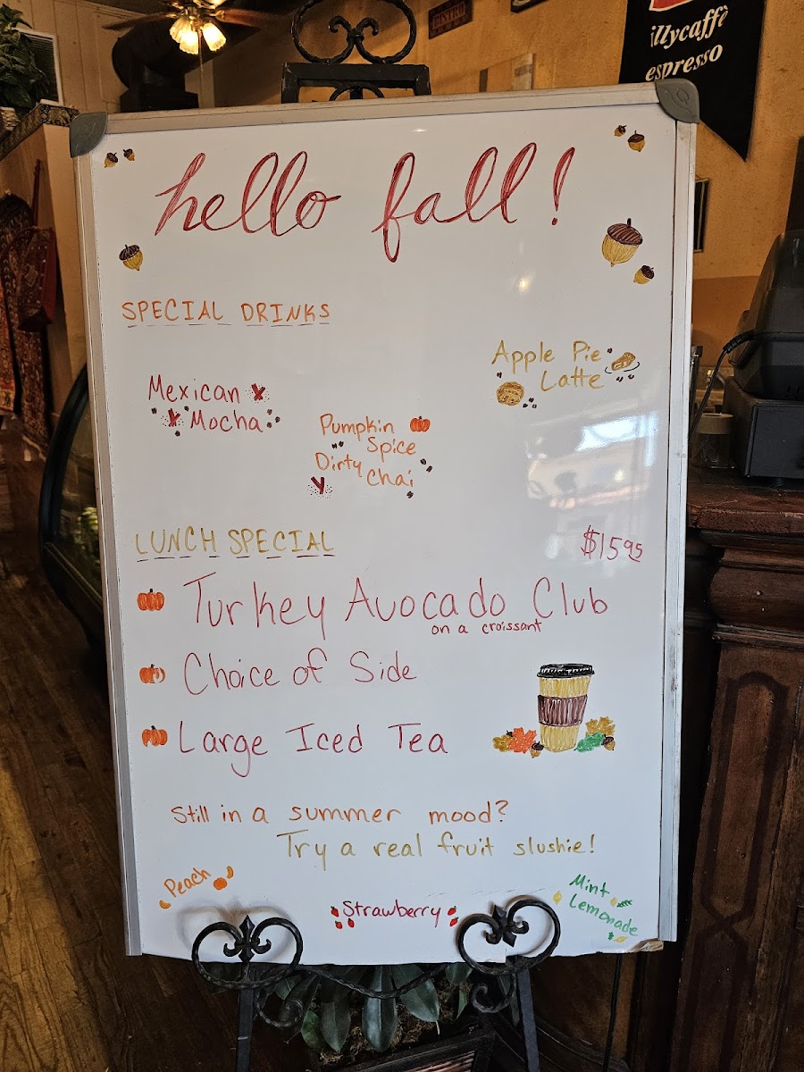 Whether stopping by for a morning cappuccino paired with a spinach quiche, settling in for a midday turkey wrap accented with chipotle raspberry cream cheese, or savoring a refreshing strawberry lemonade slushie on a warm afternoon, the menu suits a laid-back pace that matches the cozy and welcoming atmosphere. Light lunches and comforting bites coexist naturally with rich, spiced flavors that reflect the region’s diverse influences.